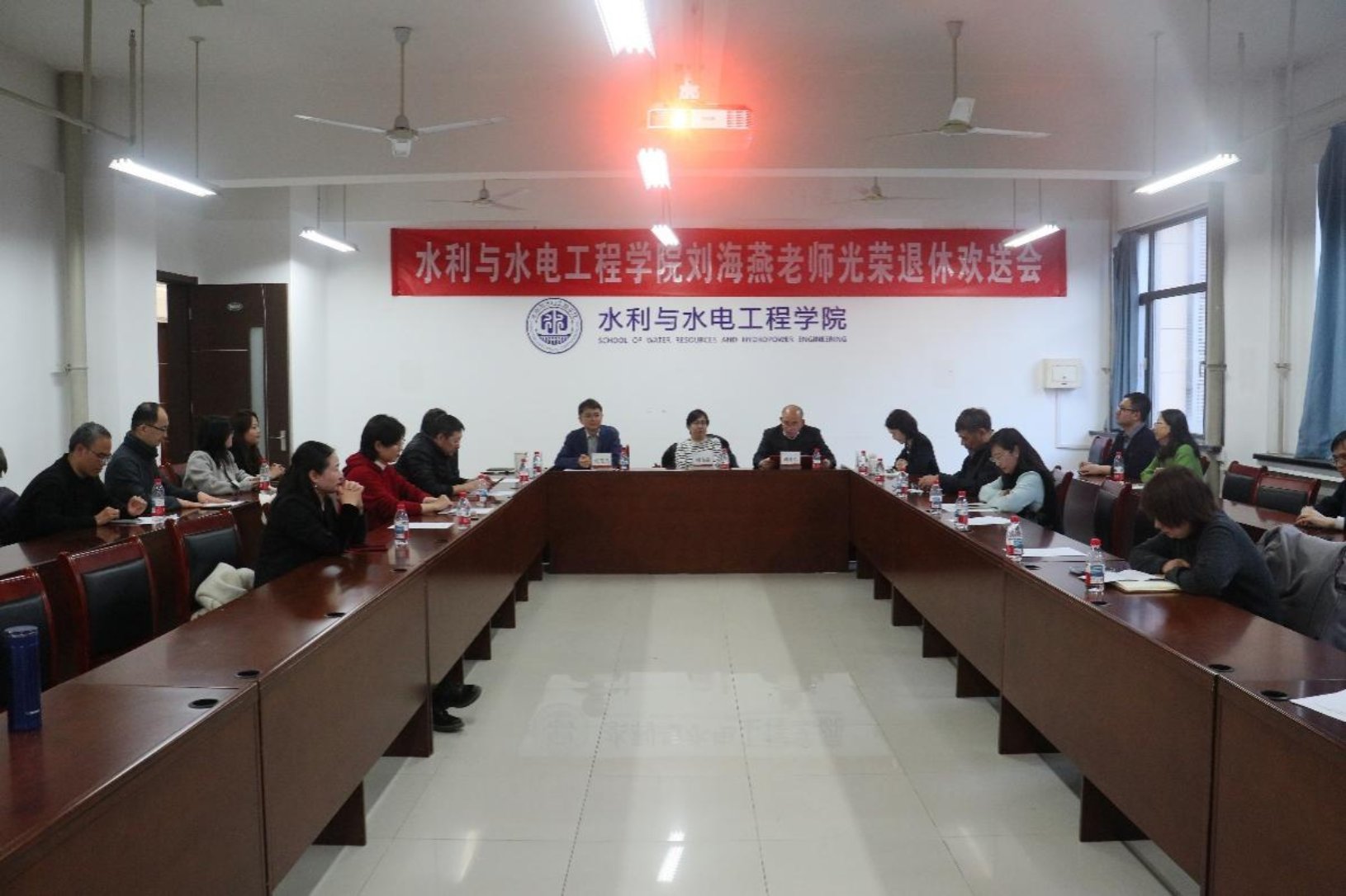 3 月 3 日下午,水利与水电工程学院在主楼 B524 第三会议室召开刘海燕老师荣退欢送会。学院全体院领导、全体教师出席会议,会议由学院党委副书记、工会主席周爽主持。