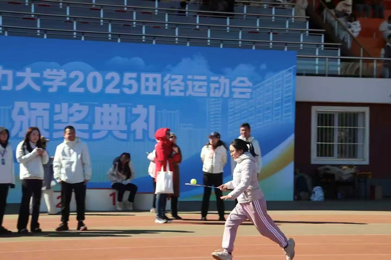 在教职工组比赛中,孔凡超获男子中年甲组 40 秒跳绳第一名、男子青年组 1 分钟跳绳第二名;周扬在男子青年组 50 米托球跑项目中获得第二名;孙爱国在男子中年乙组垒球击瓶项目中获得第三名。教职工用行动诠释了“以健康体魄,育栋梁之才”的信念。水利与水电工程学院荣获团体第六名,创下了学院历史最佳成绩。此外,学院再次斩获优秀组织奖,这一荣誉充分展示了我院在赛事组织、统筹协调方面的卓越能力。