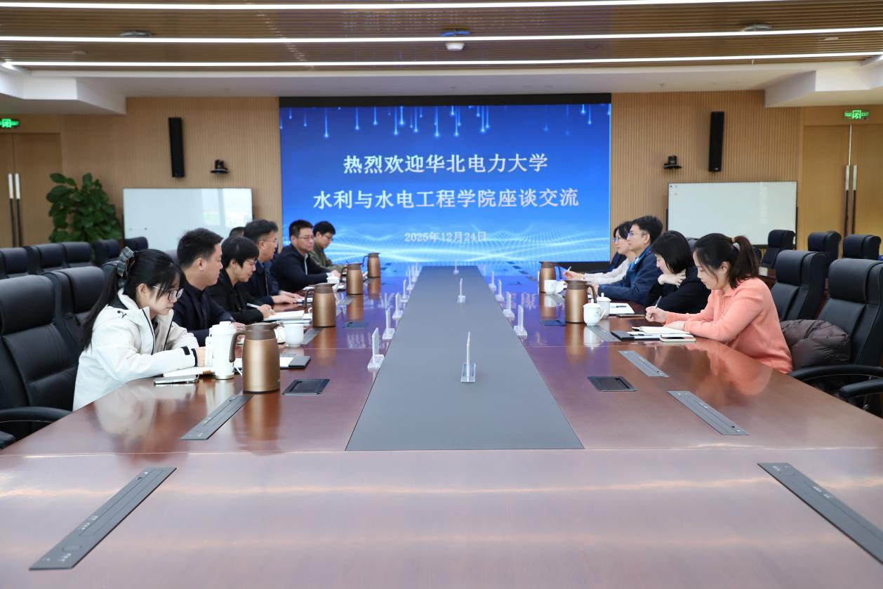 周付春系统介绍了集团的发展历程、核心业务布局与创新平台建设情况。他指出,面对新时代的治水难题,公司迫切希望与华北电力大学水电学院在科研与技术攻关、多层次人才培养、产学研平台共建等方面开展系统化、实质性合作,共同推动行业技术进步与高质量发展。张尚弘介绍了学校及学院的发展概况、学科建设历程、专业设置体系与重点研究方向。他表示,学院高度重视与行业骨干企业的合作,期待未来双方在科研项目联合申报、学生订单式培养、科研平台共建、青年教师工程实践能力提升等方面开展深度协作,建立稳定长效的校企协同育人机制。