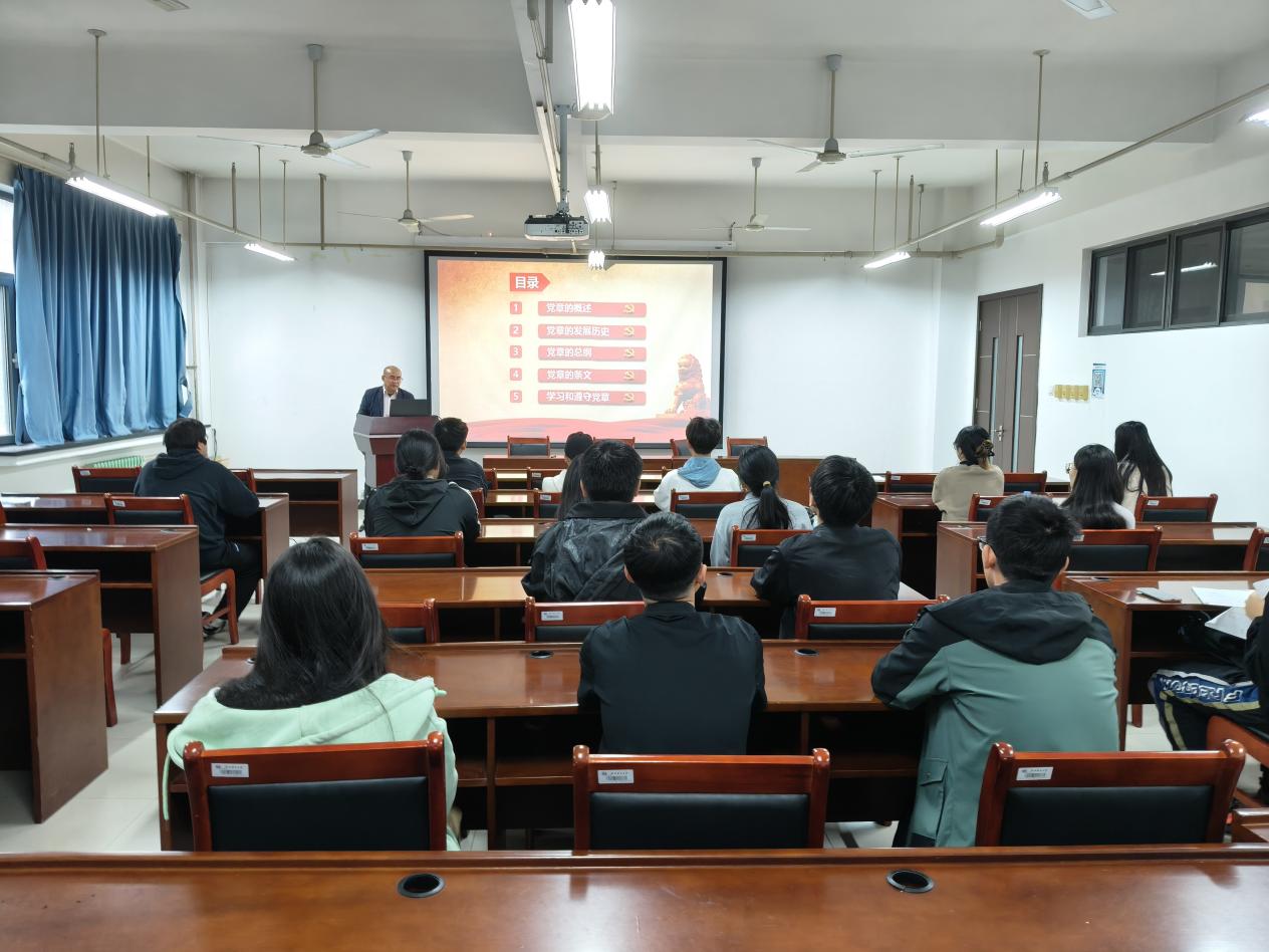 最后,学院党委书记刘明军以“深入学习党章知识,争做合格共产党员”为主题,为全体积极分子带来了一堂生动而深刻的党章解读课。刘明军从五部分展开讲解:一是党章的概述,清晰阐述了党章的定义、地位和作用,强调党章是党的根本大法,是全党必须遵循的总规矩;二是党章的发展历史,系统梳理了从党的一大到二十大党章的修订历程,让积极分子深刻认识到党章的发展始终与党的奋斗历程紧密相连,是党的实践经验和理论创新的集中体现;三是党章的总纲,详细解读了总纲中关于党的性质、宗旨、指导思想、奋斗目标、基本路线等核心内容,帮助积极分子准确把握党的初心使命和历史使命;四是党章的条文,逐一讲解了党员的义务和权利、党的组织制度、党的干部、党的纪律等具体条款,明确了党员的行为准则和党组织的运行规范;五是学习和遵守党章的要求,倡导积极分子要把学习党章作为终身必修课,学深悟透、融会贯通,同时要将党章要求内化于心、外化于行,在工作、学习和生活中自觉践行党章精神,以实际行动向党组织靠拢,努力成为一名政治坚定、作风优良、业绩突出的合格共产党员。